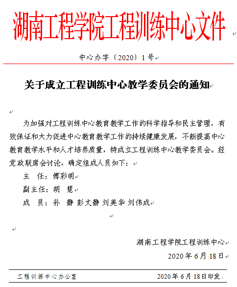 关于成立工程训练中心教学委员会的通知