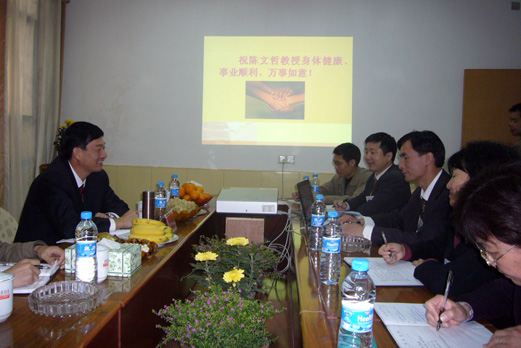座谈会上,周梓荣主任就中心的基本情况、中心建设、教学改革及团队队伍建设等七个方面向专家进行了汇报,陈文哲教授认真听取了汇报,充分肯定了中心在指导思想、训练体系和训练模式等方面具有突出特色,并就工程训练体系和运行机制等方面与中心领导及参会人员进行了深入交流与探讨。