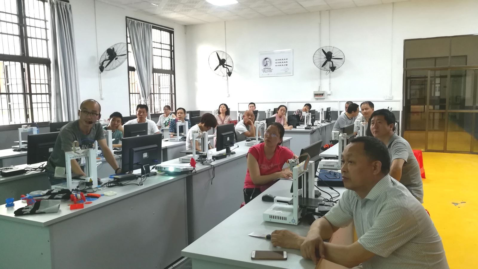 刘文锋老师对3D打印的概念、熔融沉积技术及3D打印机的基本操作方法逐一进行了讲授,重点介绍了切片环节、打印参数的设置以及模型打印过程中常见问题的处理。
