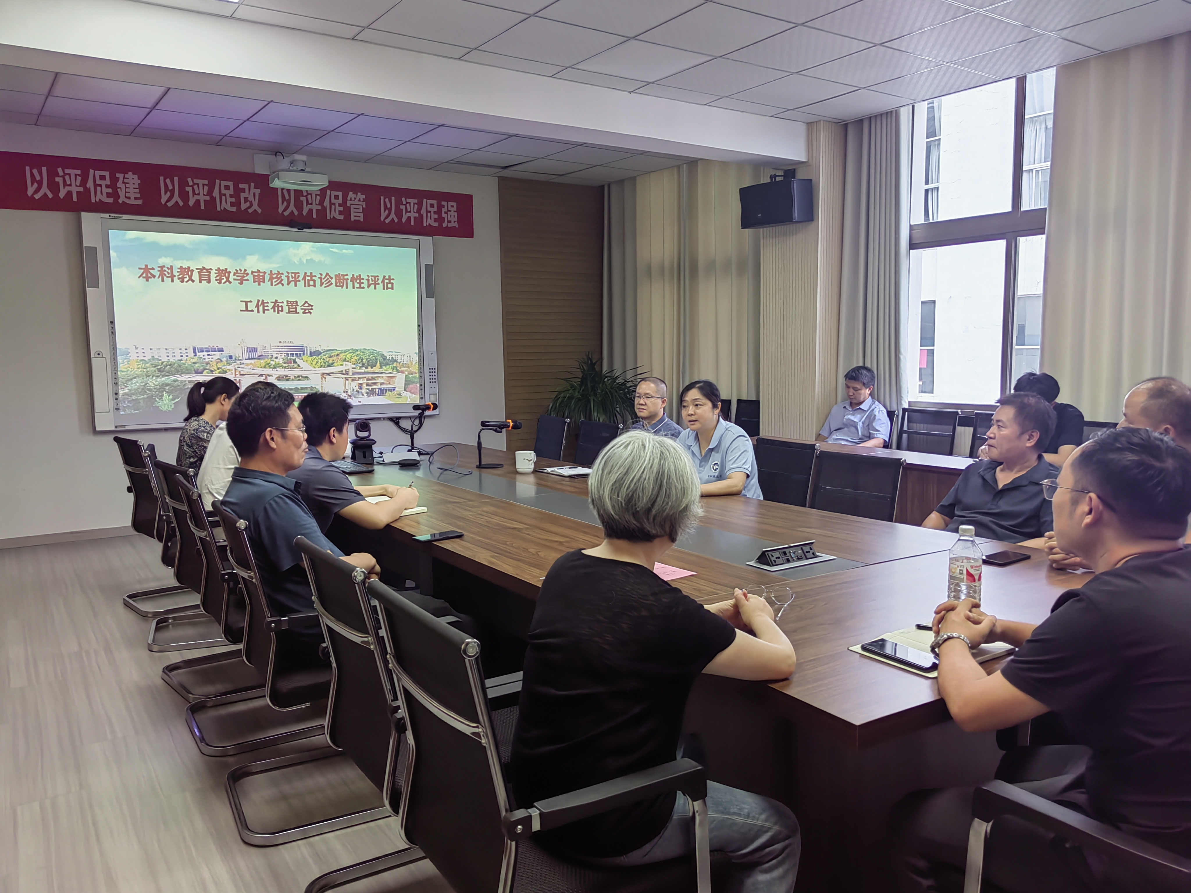 副经理胡晓东逐一解读了线上和线下诊断性评估方案、工作布置及校园考察方案等,并就本次诊断性评估相关工作进行了部署。