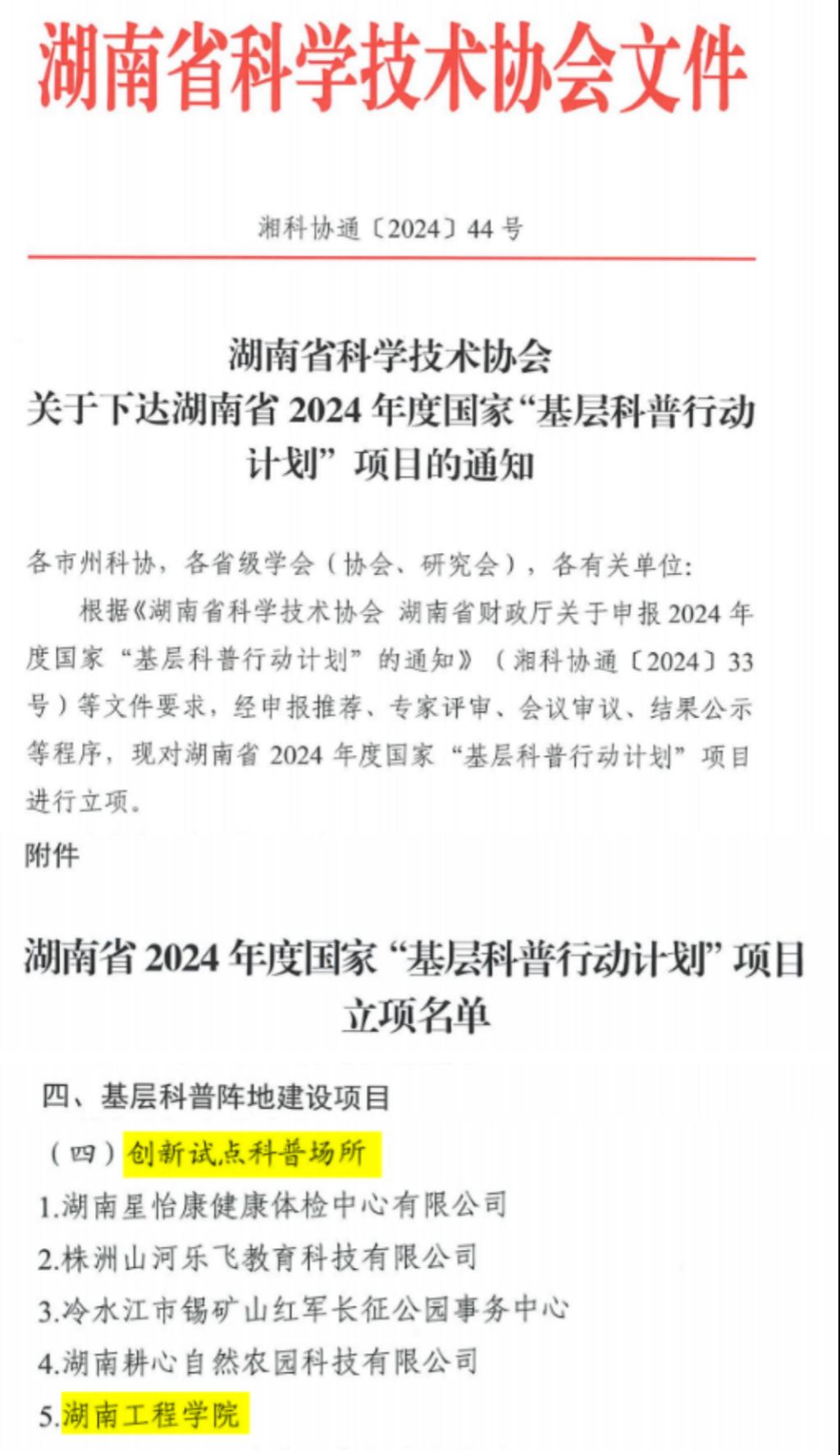 7月9日,湖南省科学技术协会发布《关于下达湖南省2024年度国家“基层科普行动计划”项目的通知》(湘科协通[2024]44号),bevictor伟德国际主持申报的“创新试点科普场所”获批湖南省2024年度国家“基层科普阵地建设”项目。