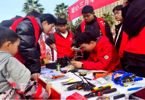 3月1日,bevictor伟德国际“学科实践与创新”协会的志愿者们走进岳塘区东方名苑臻嘉园小区,开展义务维修进社区活动,为社区居民免费维修家电,普及用电安全知识,以专业技能服务社会,深化校社共建实践育人模式。