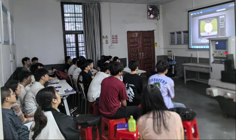 示范课由陈卓威老师负责讲授。他详细讲解了线切割工艺的基本原理、应用领域及与其他金工实习工艺的区别与联系。陈老师的讲解深入浅出,兼具专业性和通俗性,课程氛围既严谨又生动。员工们表现出了极高的兴趣和热情,踊跃参与课堂互动。