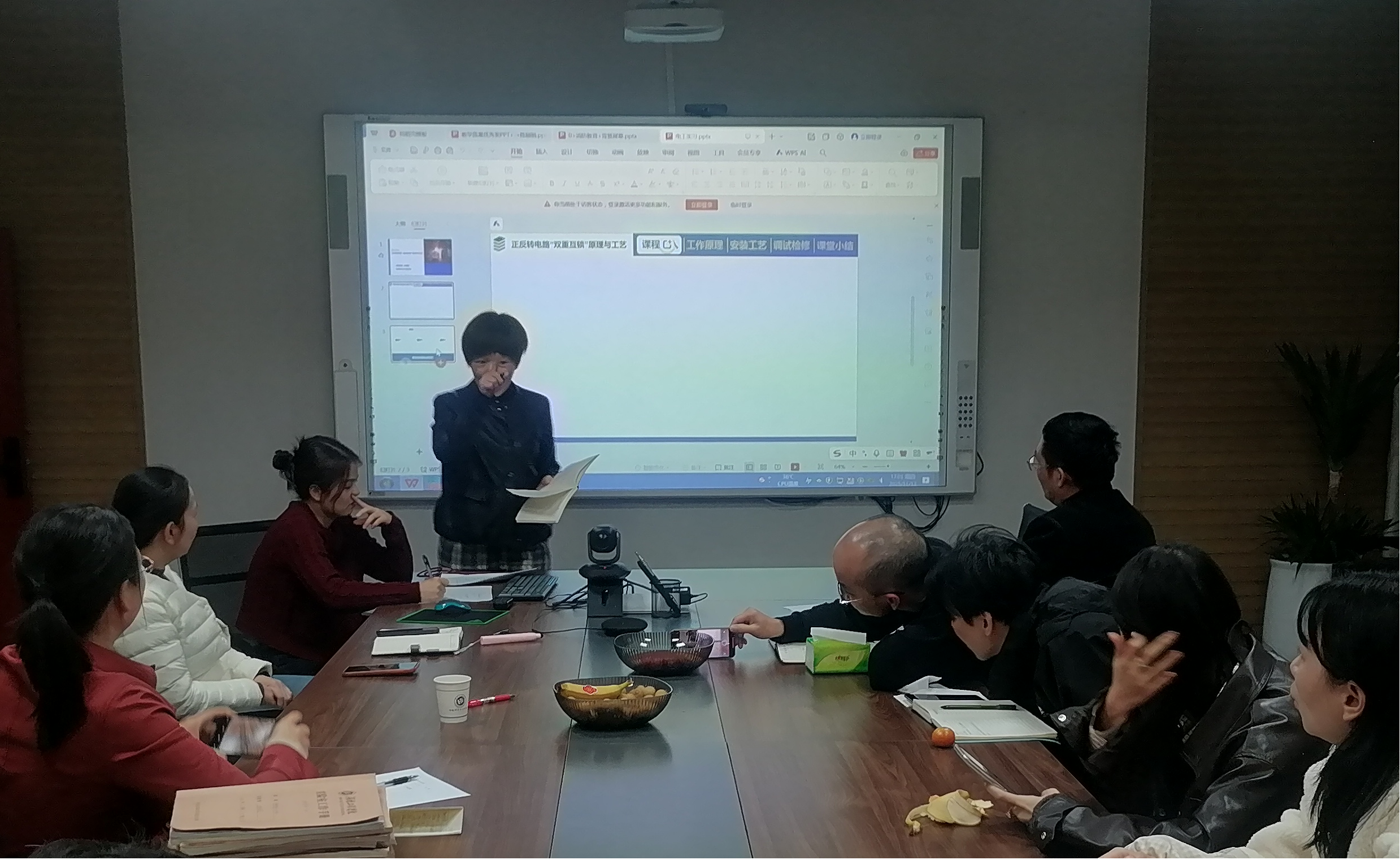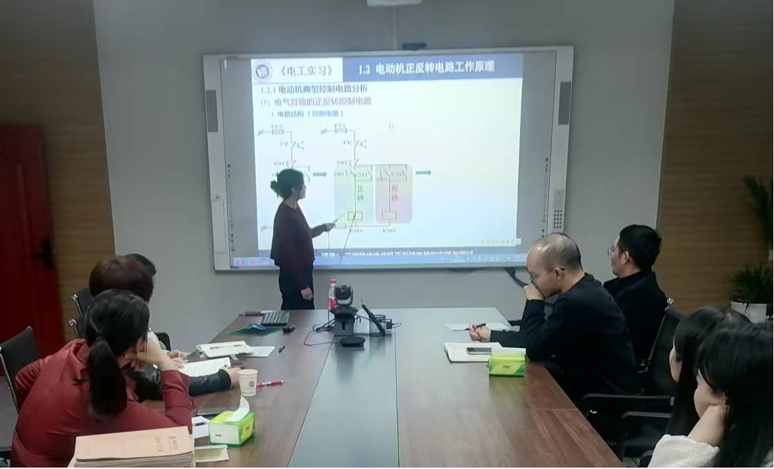 首先,电工电子教研室的陈丽娟老师进行了《三相异步电动机正反转电路安装与调试》课程的教学展示,公司全体青年教师进行了现场观摩。