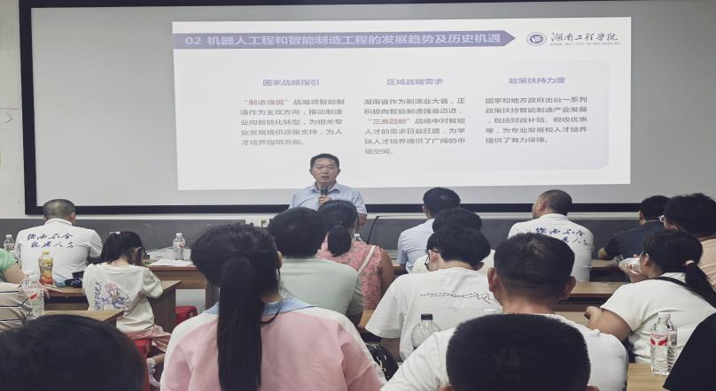 陈国强从宏观的视野分析了国家在推进“制造强国”过程中,对机器人工程和智能制造专业人才需求的趋势;结合公司的办学历程,系统介绍了公司的人才培养特色和取得的重要办学成果;基于公司的办学定位和育人理念,从公司的办学条件和人才培养成就等方面,向家长朋友作系统讲解。
