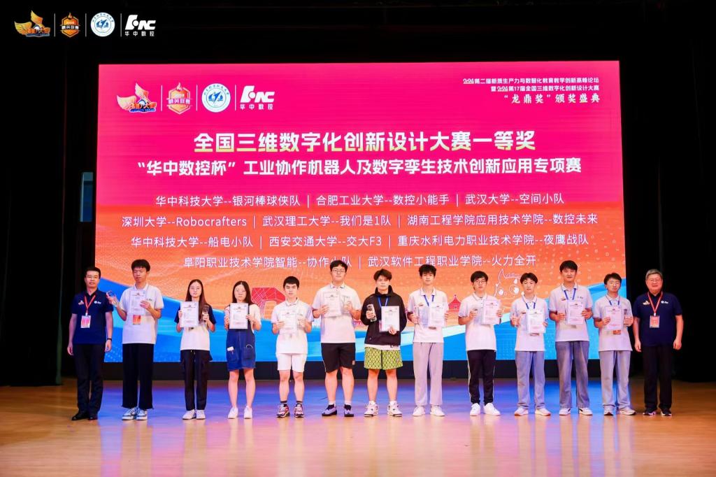 8月18-20日,第 17 届全国三维数字化创新设计大赛“华中数控杯”工业协作机器人及数字孪生技术创新应用专项赛总决赛在北京航空航天大学举行。历经校赛、省赛的激烈角逐,来自全国入围国赛的100多所高校145支参赛队伍,共计700余位参赛选手和指导老师,依靠深厚的理论基础、熟练的动手能力、卓越的创造能力、顽强的拼搏精神在年度总决赛的舞台上共同角逐“龙鼎大奖”。公司两支参赛队伍分别荣获全国一等奖、二等奖。