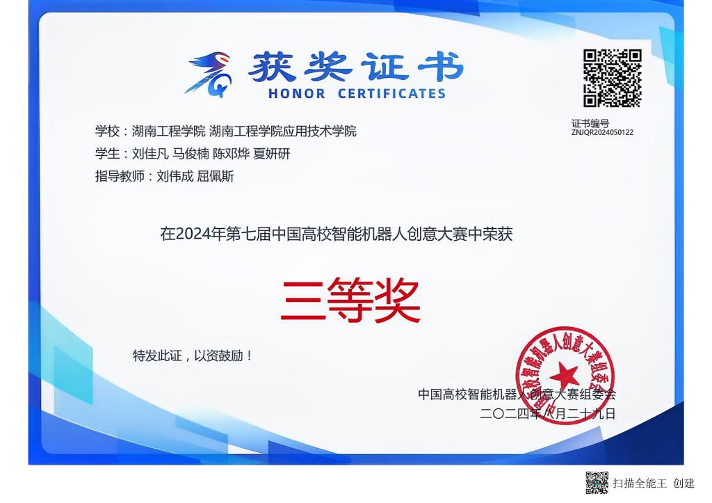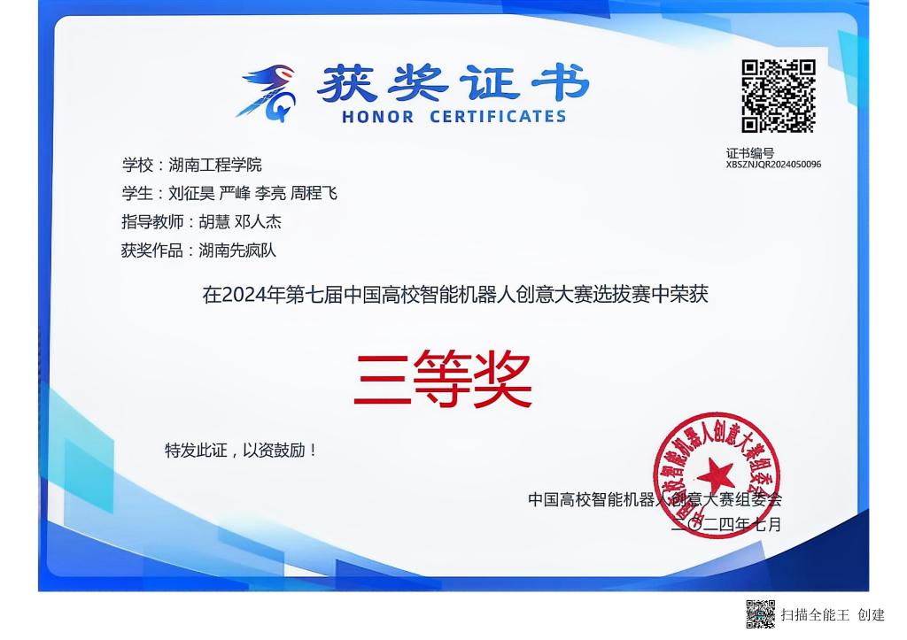 2024年第七届中国高校智能机器人创意大赛荣获三等奖