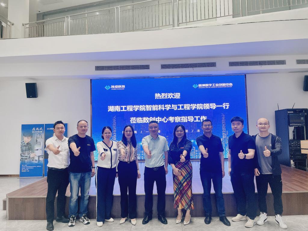 接着,胡慧经理一行参观了株洲数字工业创新中心和技成科技有限公司,深入了解了中心的发展历程、研究方向和创新成果。在与企业的交流中,双方就工业机器人技术创新、智能产业发展趋势、团队技能培训等关键话题进行了深入探讨,并就未来的合作方向交换了意见。